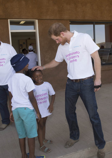 Prince Harry with youngsters during the opening of the Sentebale Mamohato children’s centre in Thaba Bosiu, Lesotho.