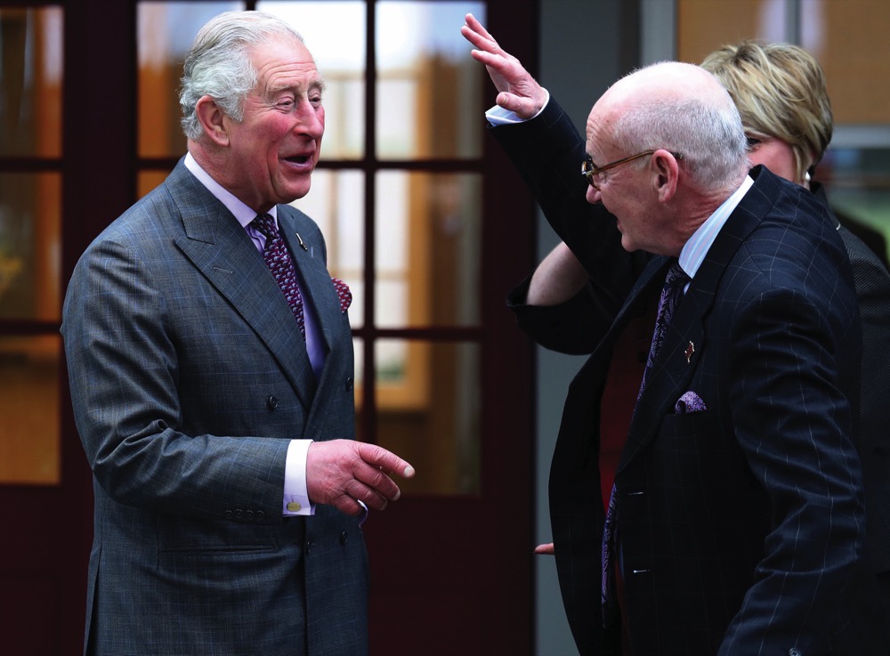 Prince Charles with Kenneth Dunsmuir Executive Director at the Prince’s Foundation as he arrives at The Dumfries House Health and Wellbeing Centre in Cumnock, 2019.