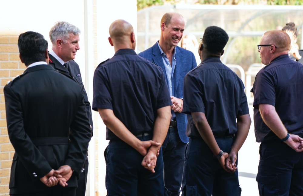 The Duke of Cambridge meets firefighters alongside London Fire Brigade Commissioner Andy Roe (left) during a visit to the Dockhead Fire Station to mark Emergency Services Day (999 Day). Picture date: Thursday September 9, 2021.